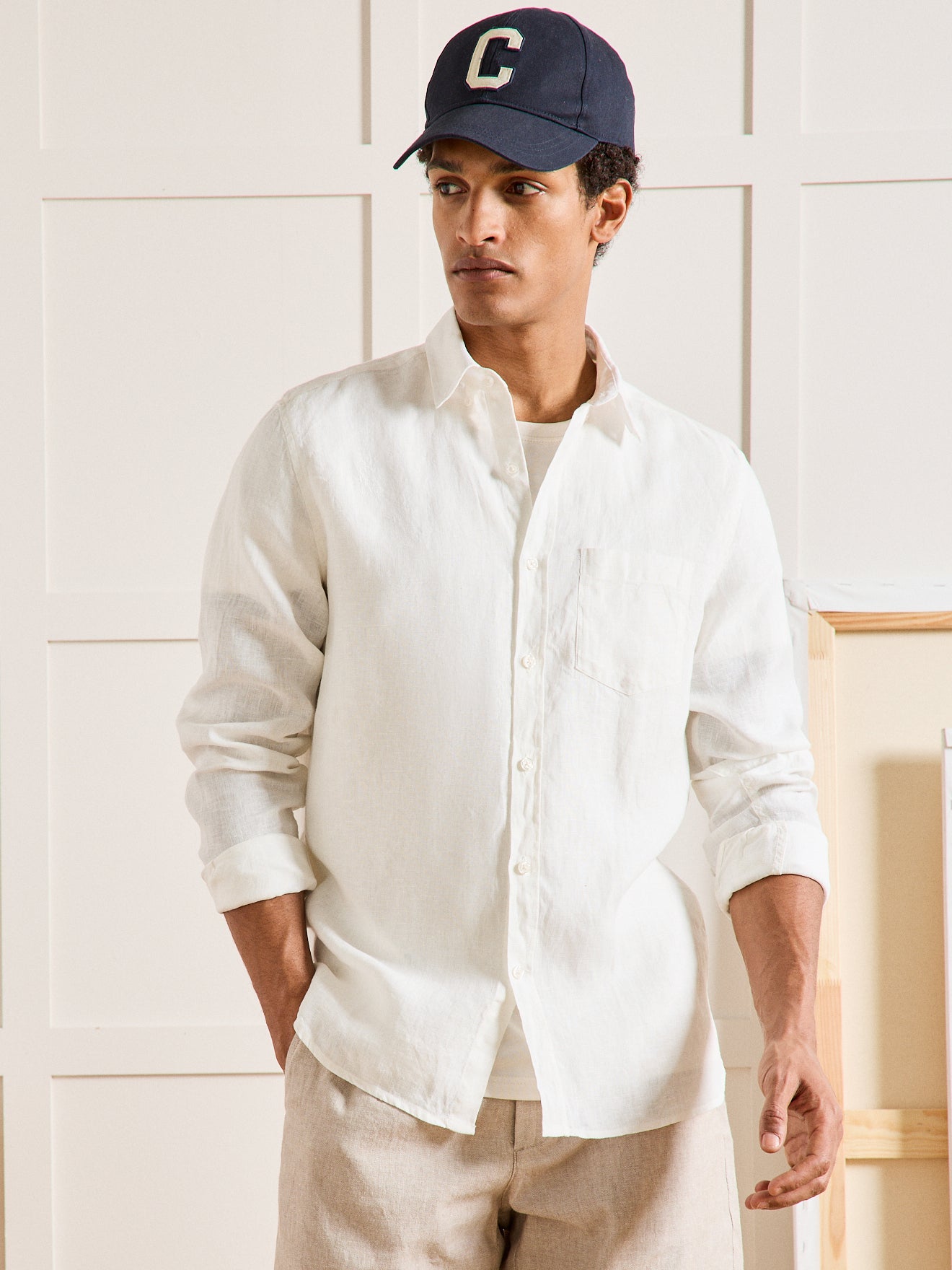 Cyrillus Men’s Regular Fit Plain Linen Shirt | Ecru