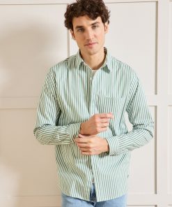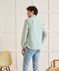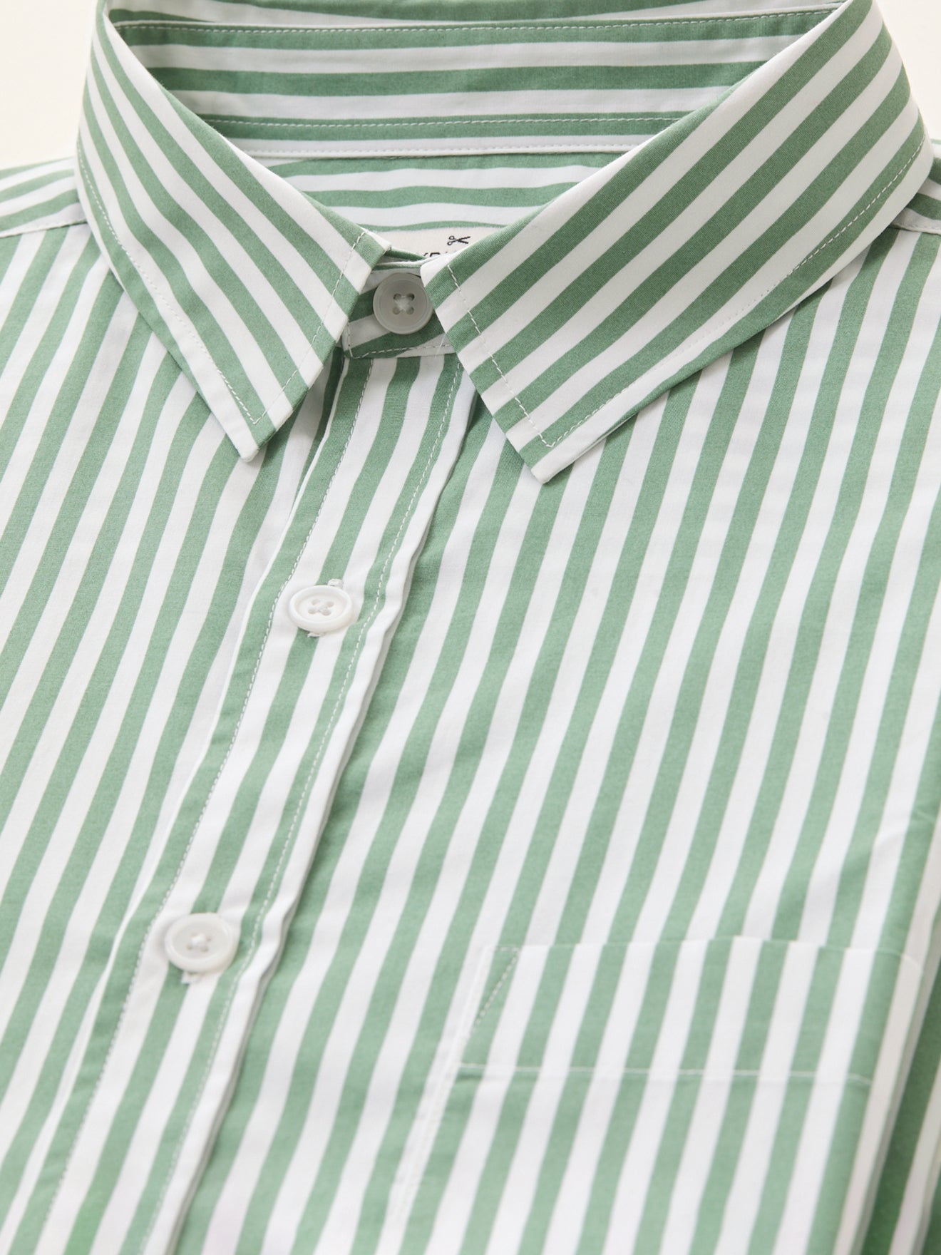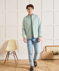 Made with a very soft feel and supple poplin, this shirt adds vibrant style that’s casual and chic with modern stripes and a discreet embroidered monogram. Classic collar, button placket and rounded cuffs with adjustable 2-position button fastening. The straight style suits all body shapes. Breast pocket, shoulder yoke and back yoke with 2 simple comfort pleats. Slightly rounded hem, reinforced gussets.