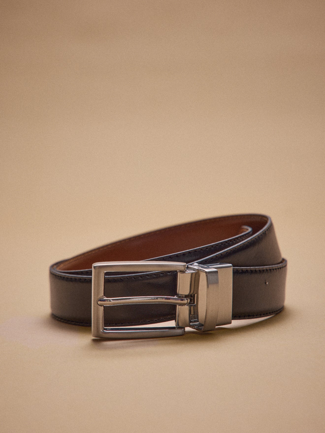 One black side, one brown side. This reversible leather belt is the chic and discreet accessory that adapts to your outfits. Mastered craftsmanship from our Belgium partner.