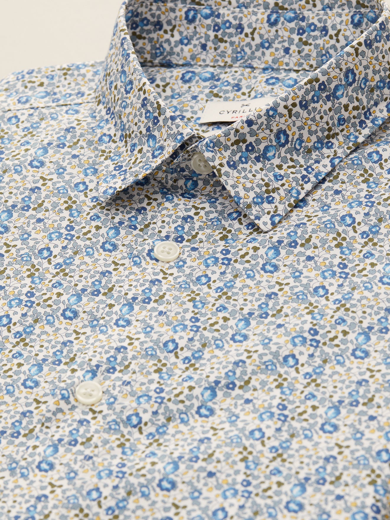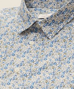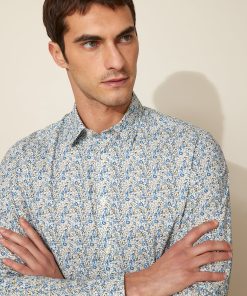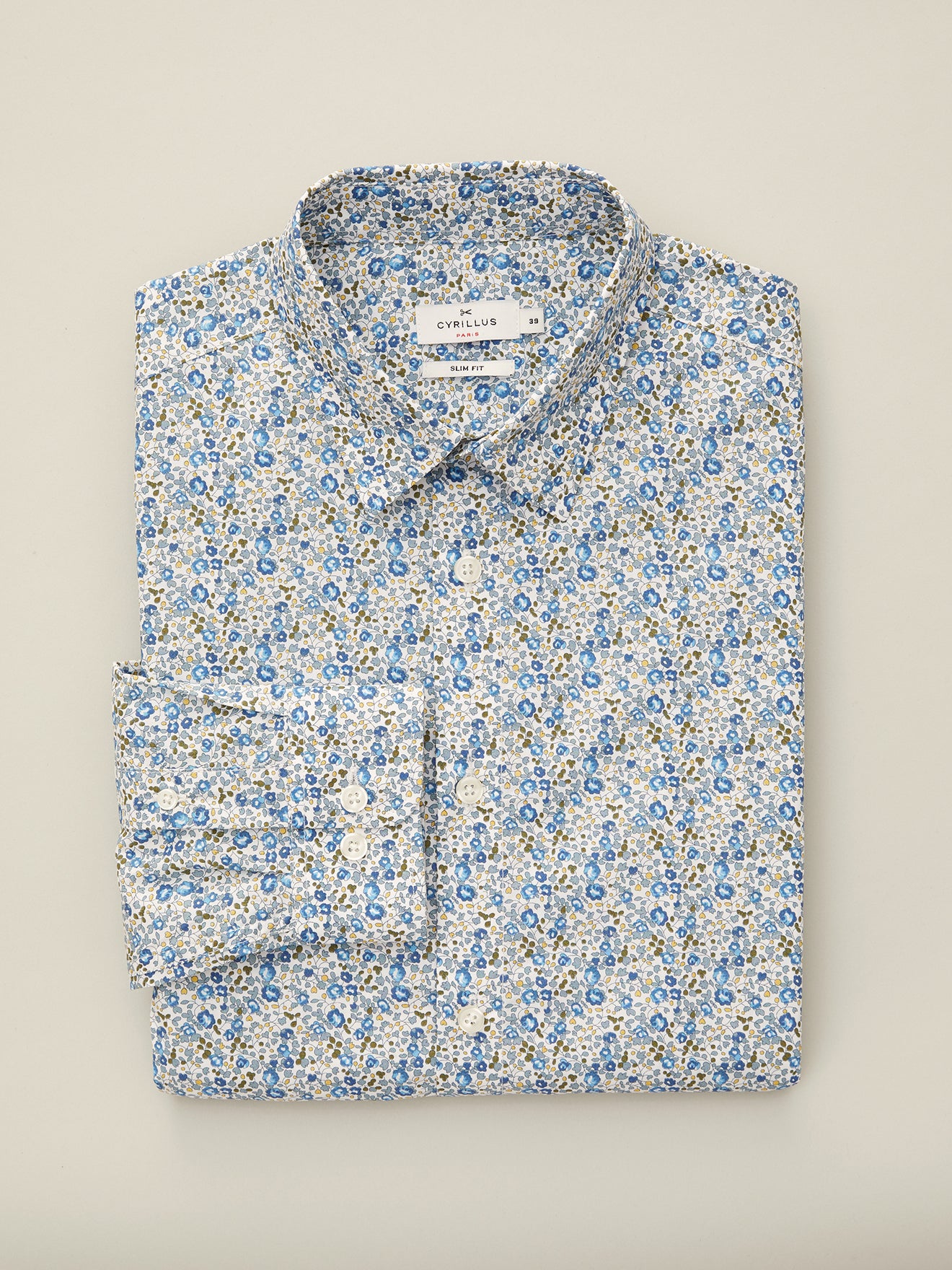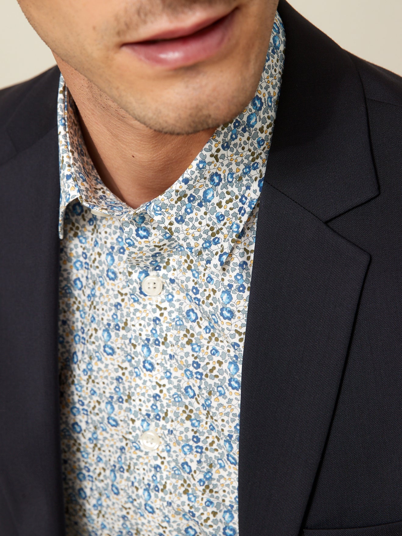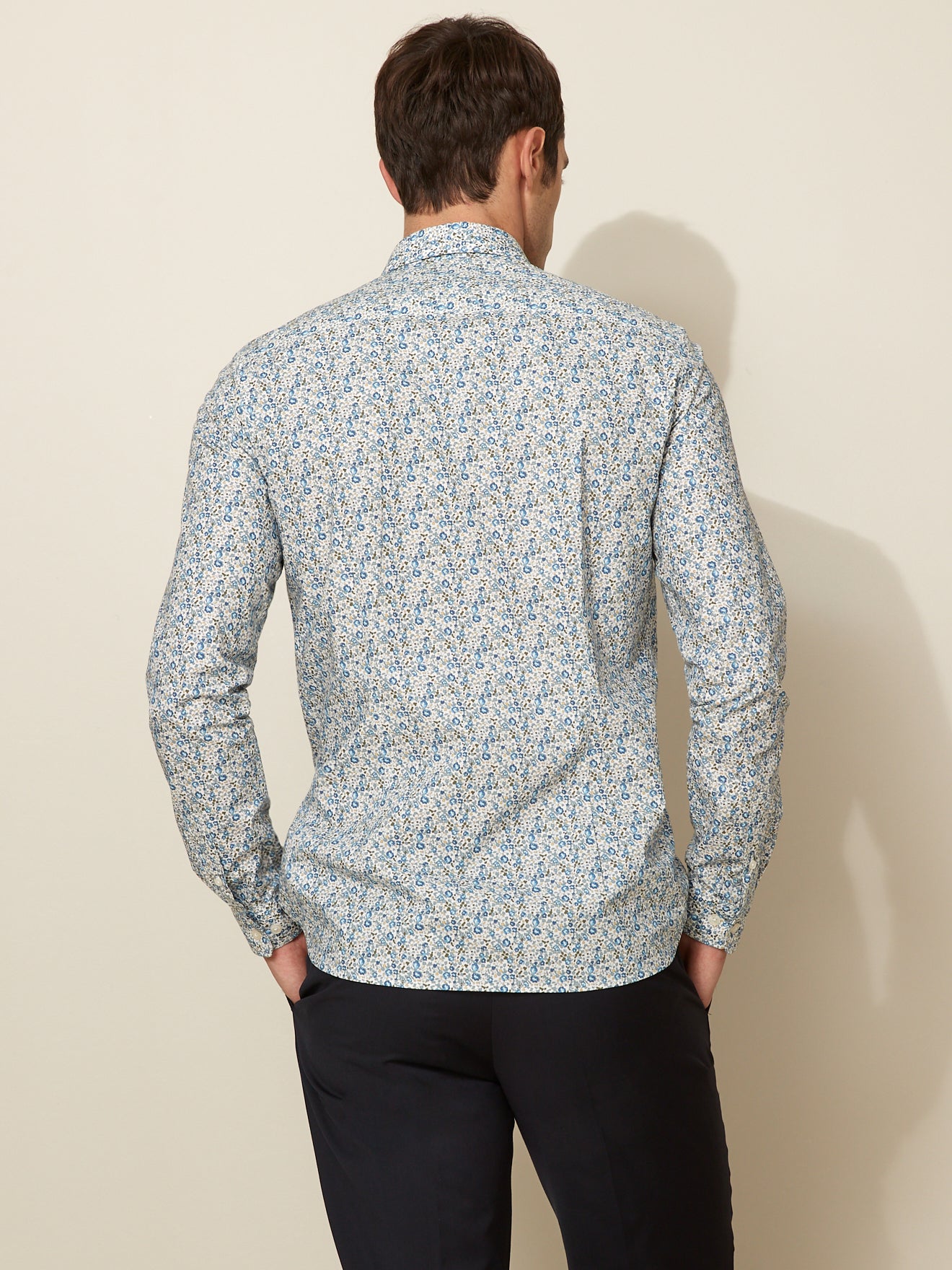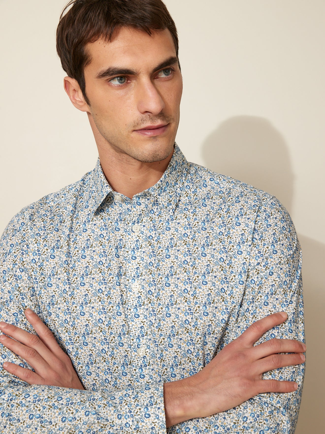 A floral print in soft shades inspired by the Sixties. This shirt with Eloise motif is made with Liberty fabric. Pure, naturally soft cotton that’s perfect with jeans. The fitted style underscores the figure. Slightly contoured through the chest and waist. Small collar and button placket.