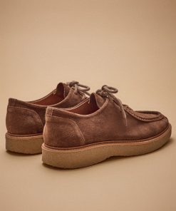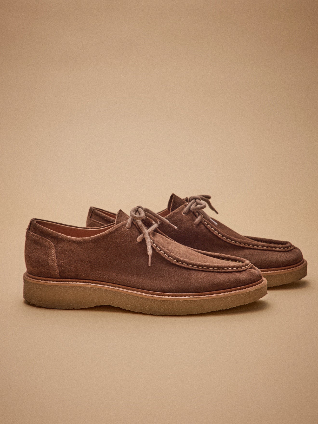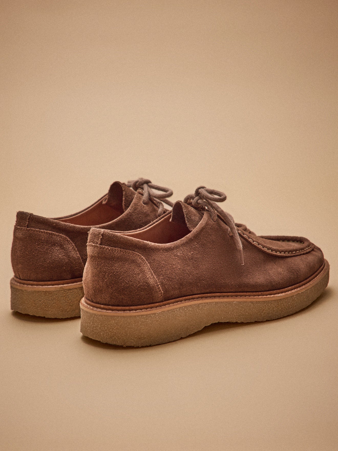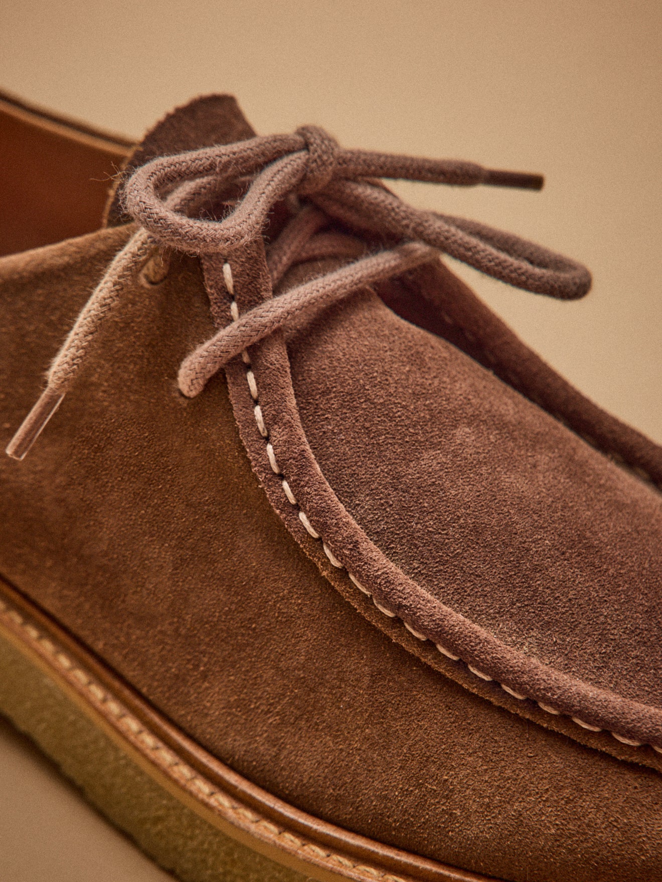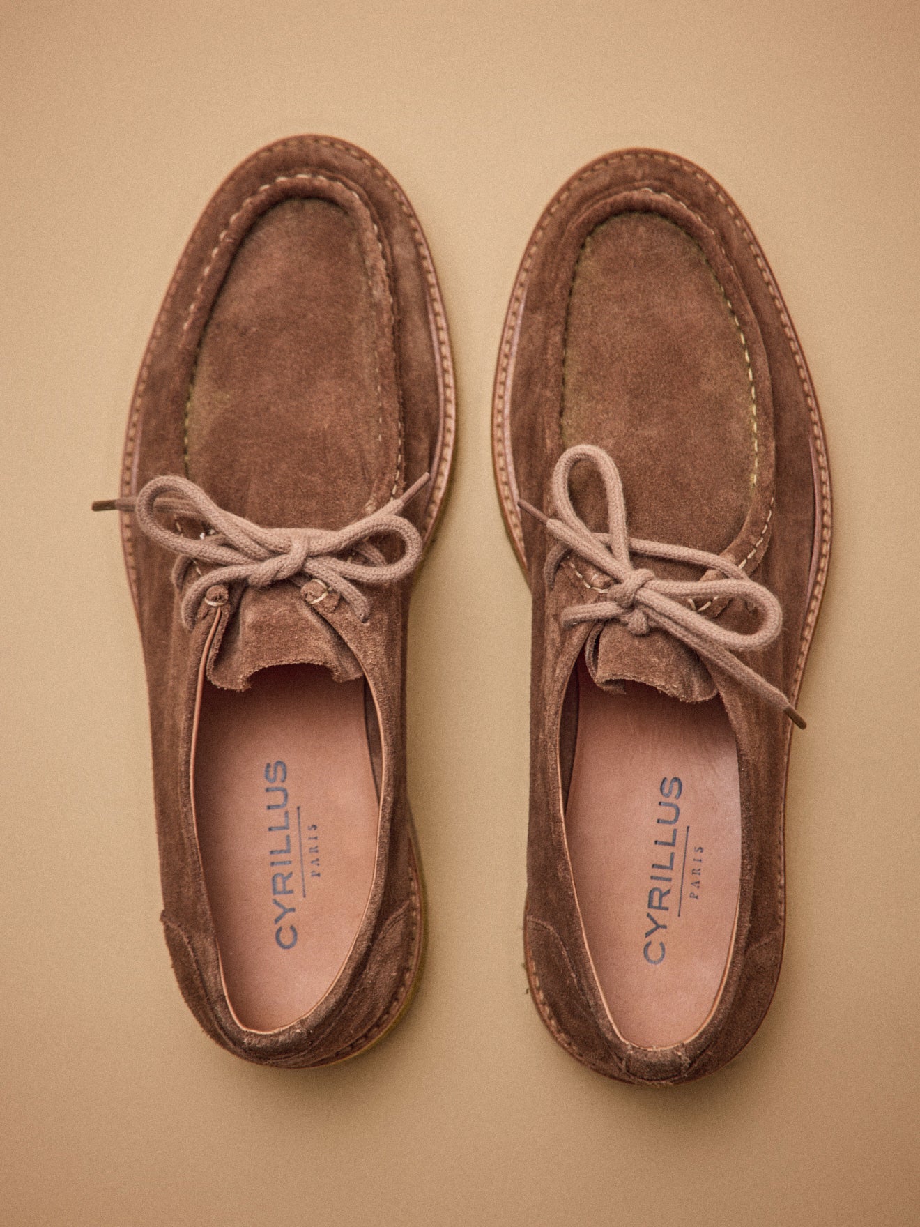 Trendy khaki and velvety suede. As elegant in town as on a weekend, these Derby shoes add the finishing touch to a sporty chic silhouette.