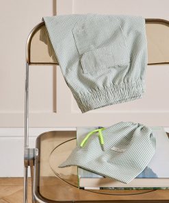 The renown crinkled fabric is always trendy and pleasant to wear. This summer it takes a swing by the beach or pool in a striped seersucker swimsuit. And it comes in a practical matching pouch make for travelling or holding sunglasses and other beach accessories.