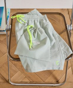The renown crinkled fabric is always trendy and pleasant to wear. This summer it takes a swing by the beach or pool in a striped seersucker swimsuit. And it comes in a practical matching pouch make for travelling or holding sunglasses and other beach accessories.