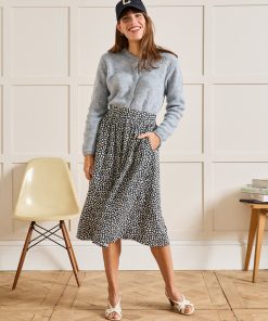 Our exclusive leopard print in chic shades tames urban style. It’s an obvious choice for this stylishly feminine mid-length skirt. And a praise-worthy fabric that’s soft and flowing with a tone-on-tone texture.