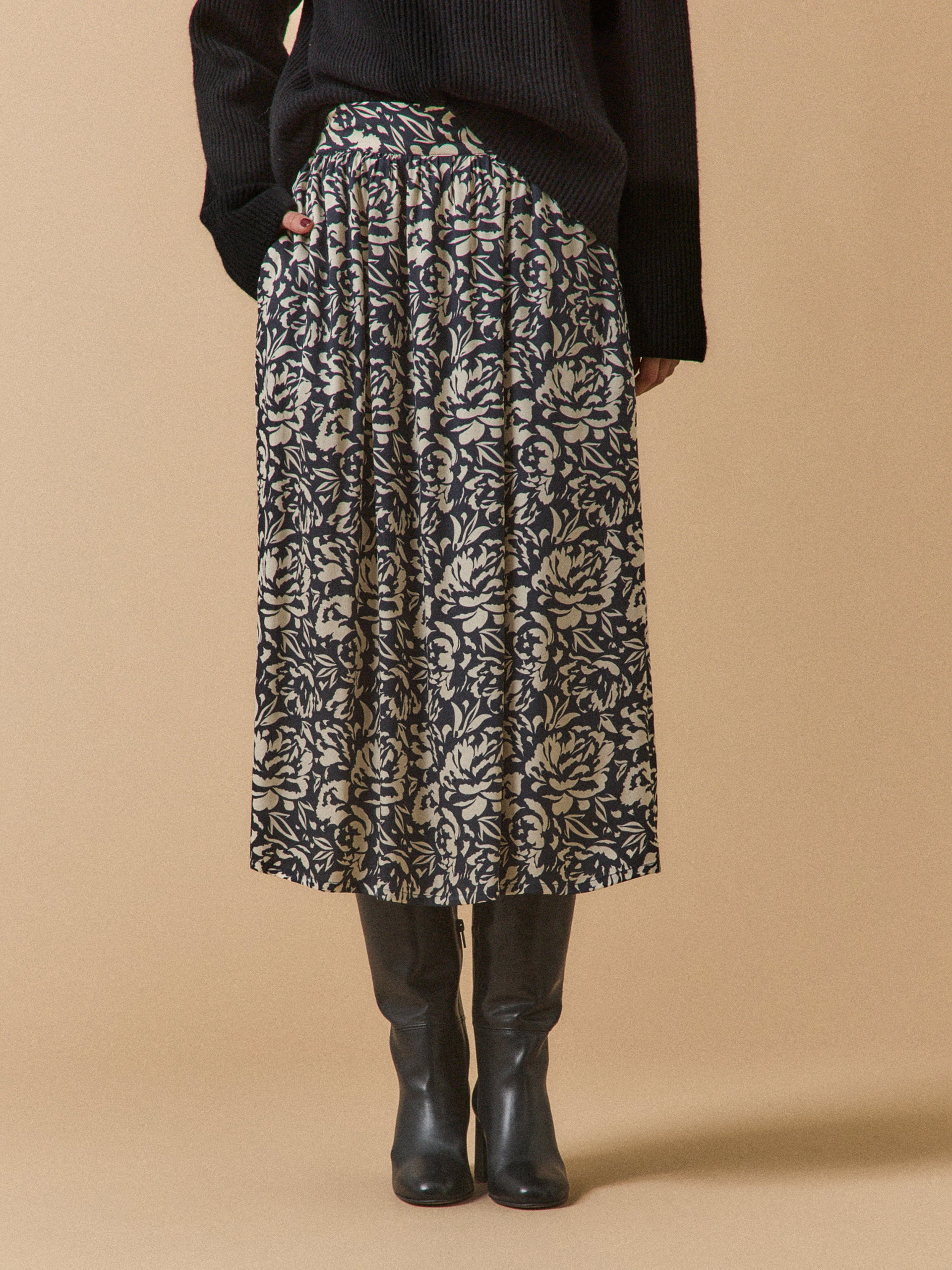 An exclusive print that works for everyday as well as refined fashion. The high-quality Italian fabric has a light and flowing drape. A full shape, style and comfort make this mid-length skirt perfect for assertive urban style.