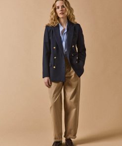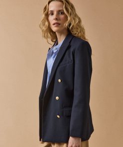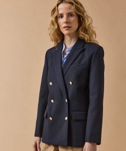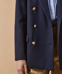 A quality twill enhanced with wool, the perfect shape and golden buttons. This blazer combines timeless elegance with modern style for a look that’s sophisticated yet casual. Trendy with jeans. Made in Europe with European fabric.