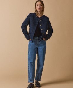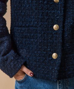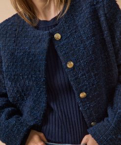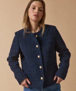 To deliver chic and fashionable allure, this collarless jacket is made with an Italian-quality tweed. Flawless short, straight style. An essential basic in your closet for everyday urban wear. For indoor or outdoor. Made in Europe.